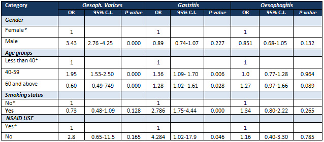 Table 4: Logistic Regression Analyses for potential risk factors of common UGI findings among the study patients