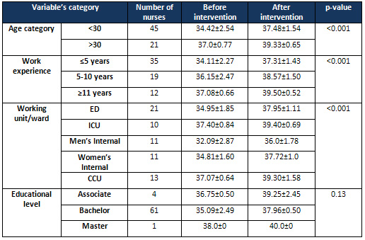 Table 2: Mean and standard deviation of participants scores based on their demographic characteristics